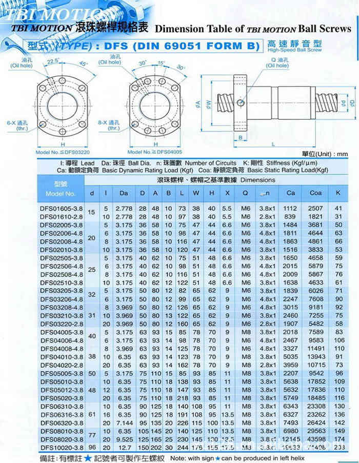 原裝TBI滾珠絲杠DFSR2005的規格參數如下: