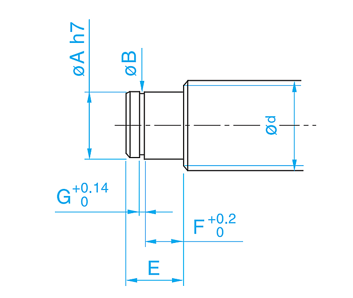 TBI滾珠絲桿軸端加工尺寸(采用EF支撐側): 單位:mm