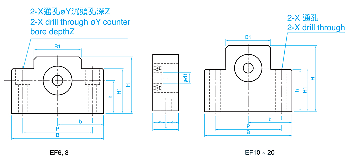 EF支撐側絲杠支撐座外型尺寸: 單位:mm