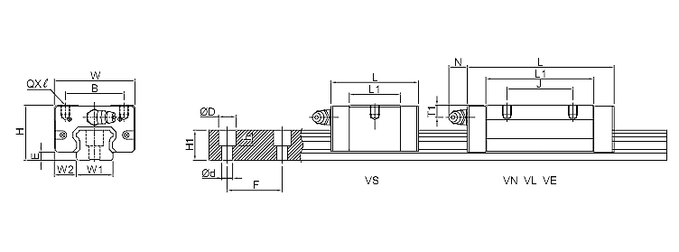 H W2 E W B J L L1 Q T1 油孔 N W1 H1 D h d F