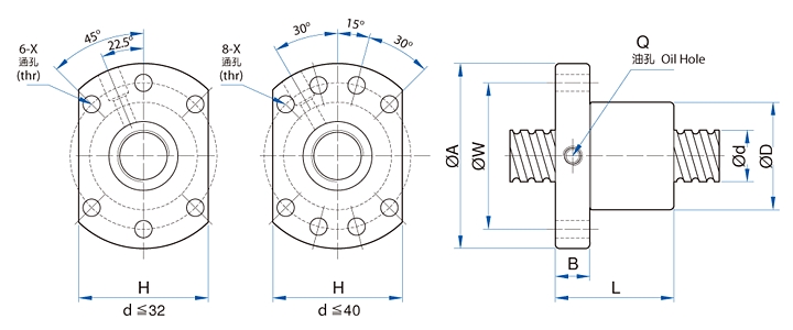 I : 導(dǎo)程, Da : 珠徑, n : 珠卷數(shù), Ca : 動(dòng)額定負(fù)荷(kgf), Coa : 靜額定負(fù)荷(kgf), K : 鋼性(kgf/μm) ★ : 可制作左螺紋