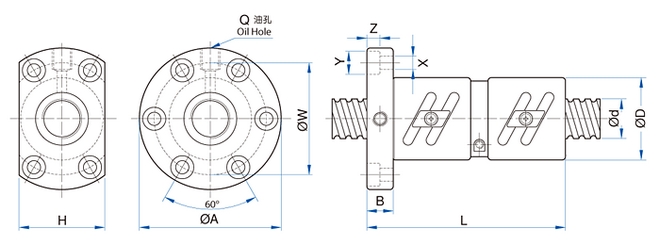 DFT 滾珠絲杠 四孔雙螺母法蘭型